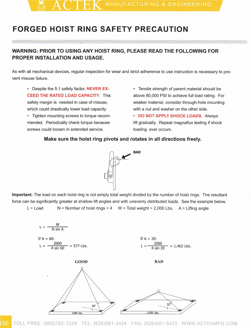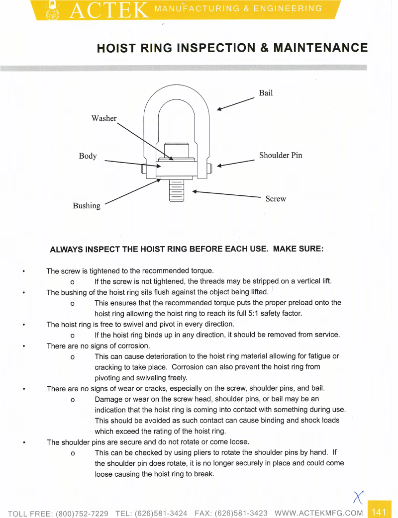 Actek > Hoist Ring Safety