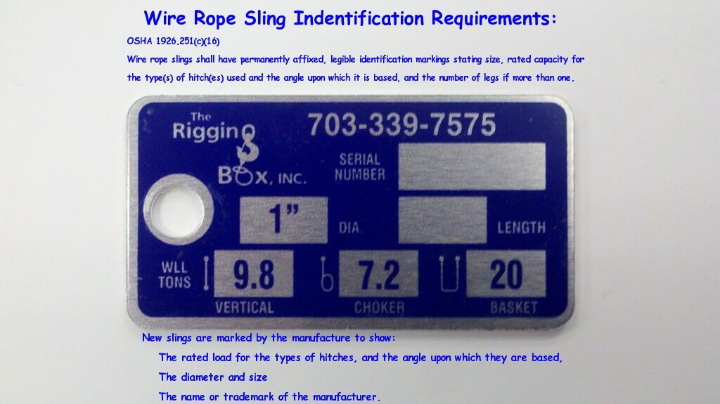 Flemish Eye Spliced Wire Rope Slings Flemish Eye Spliced Wire Rope Slings Rated Capacties (1 tn=2000 lbs) Identification Requirements
